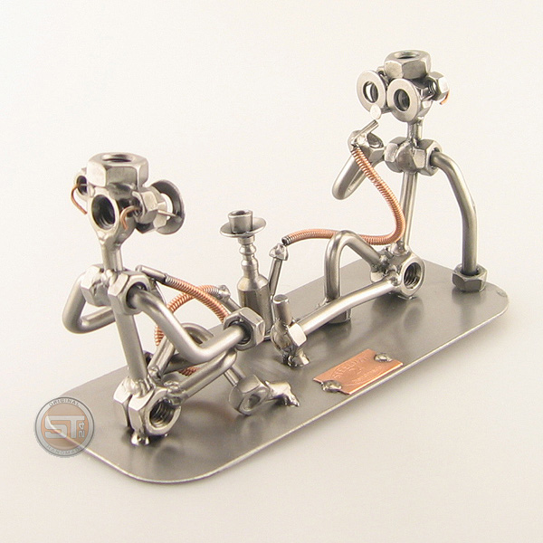 Two Steelman in a Hookah Party metal art figurine Two Steelman in a Hookah Party metal art figurine